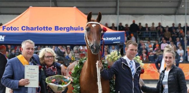 De show van Wendelrose was ingepland en ook de show van stammoeders, waarvoor onze Wyomi Landzicht (Marvel) met nakomelingen was gevraagd, ging volgens plan. Wat we niet verwacht hadden was dat we aan het einde van deze show uitgeroepen zouden worden tot Tuigpaardfokkers van het jaar! Een hele bijzondere onderscheiding die we te danken hebben aan succesvolle keurings- en sportpaarden en aan het fokken van een goedgekeurde tuigpaardhengst. Achter de schermen had ons team ervoor gezorgd dat er nog een aantal extra fokproducten in de baan kwamen! Een bijzonder moment! Lees hier het volledige verslag van het KWPN.